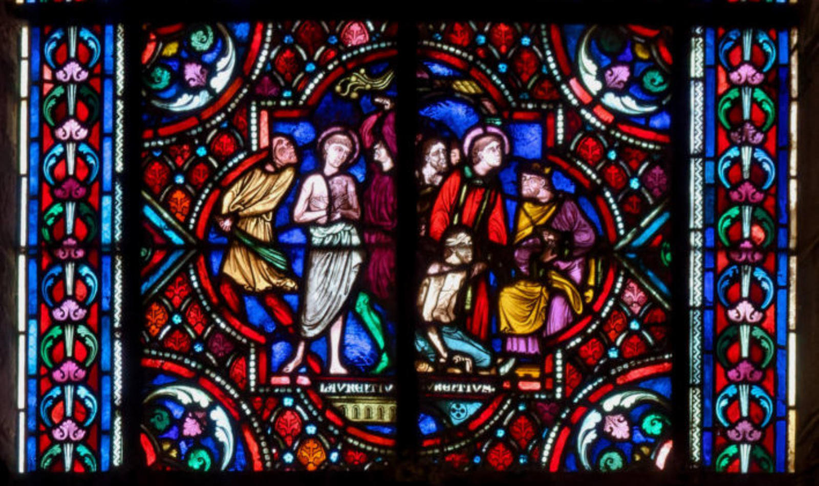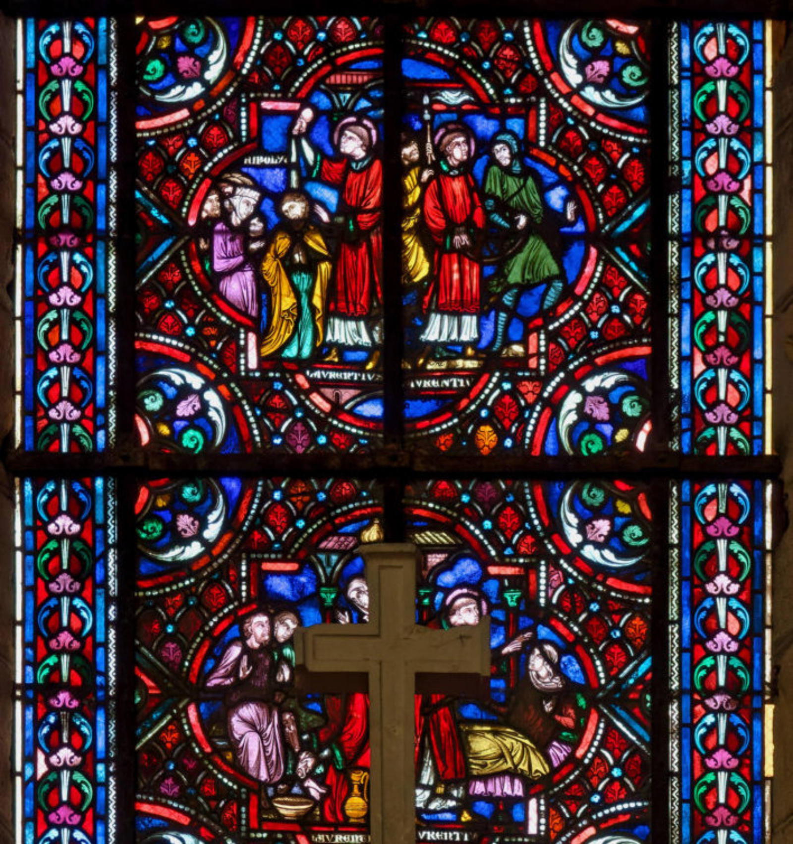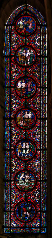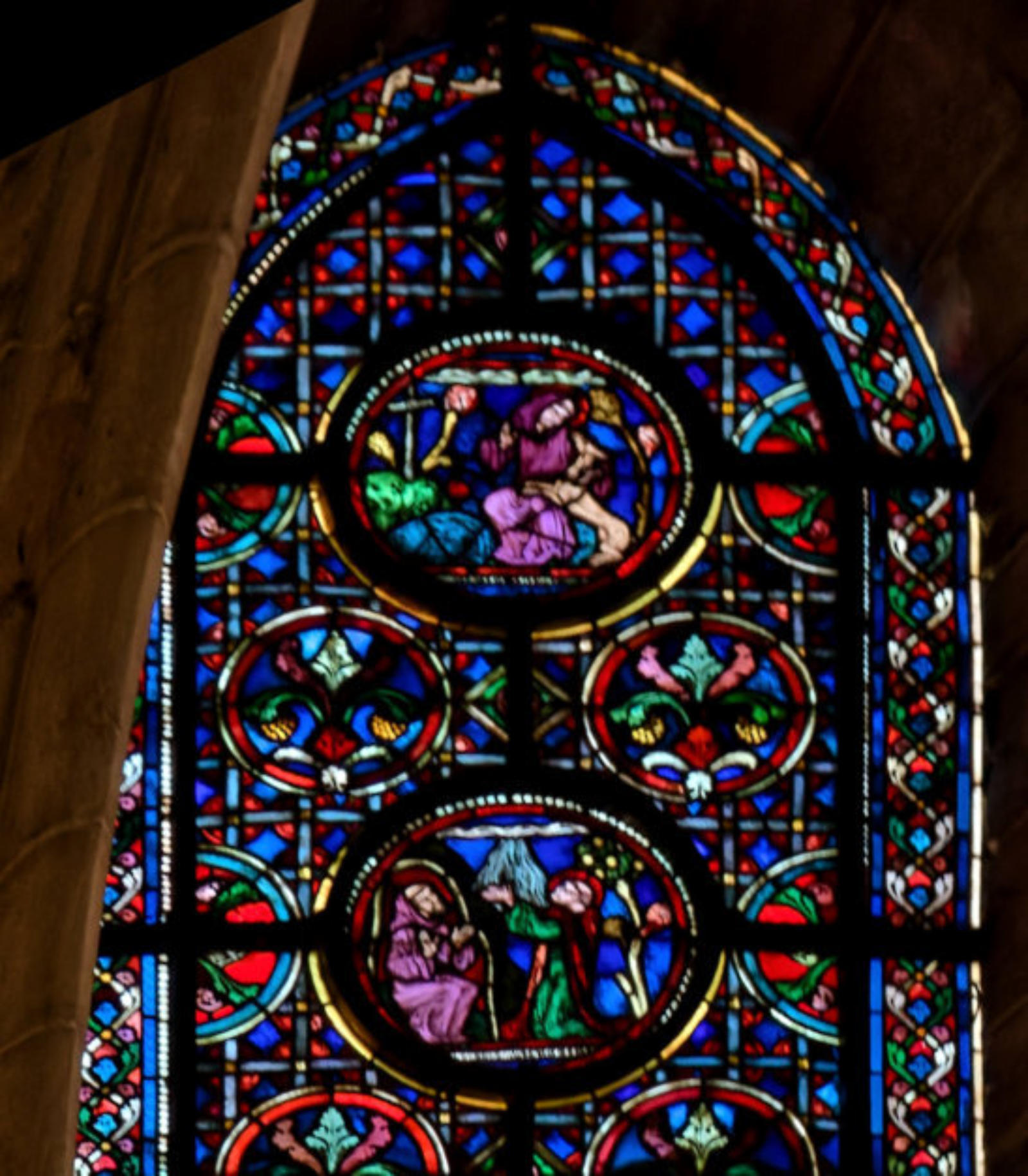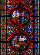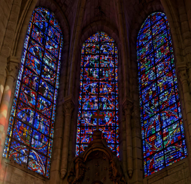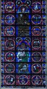 Les vitraux modernes du choeur sont une création de Jacques Le Chevallier