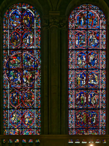 1190 (-1250)AuxerreCathédrale Saint-ÉtienneBaie 113Sacrifice d’Isaac (avec un bélier) et sous un Christ de la Résurrection