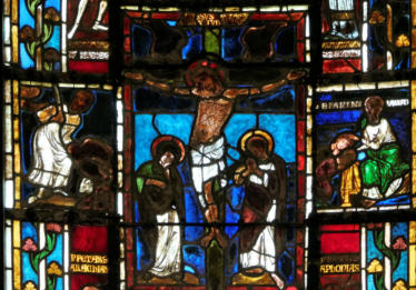 1138 (-1147)Châlons-en-ChampagneCathédrale Saint-ÉtienneTrésorVerrière typologique de la PassionLe sacrifice d’Isaac à coté de la Crucifixion et du serpent d’airain