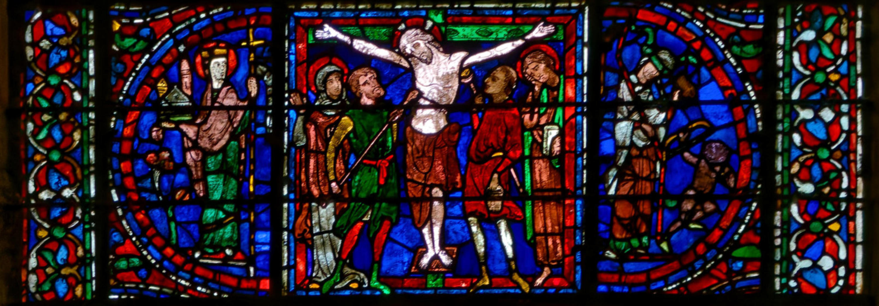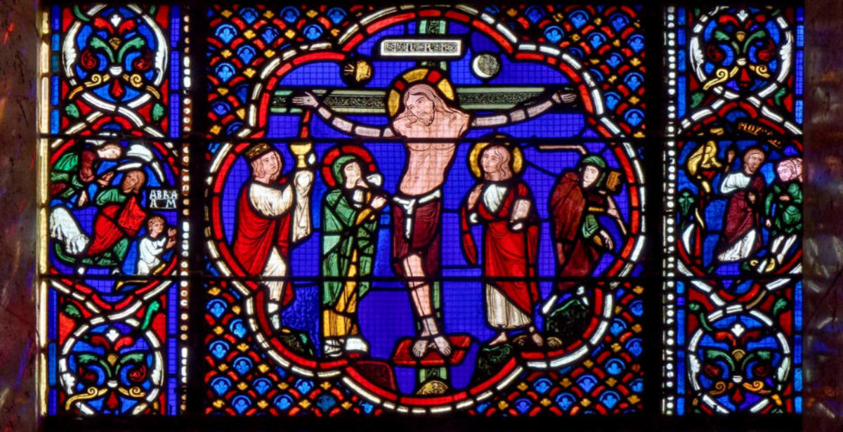 1215 (-1220)LyonPrimatiale Saint-jean-BaptisteBaie 0Sacrifice d’Isaac à côté de la Crucifixion