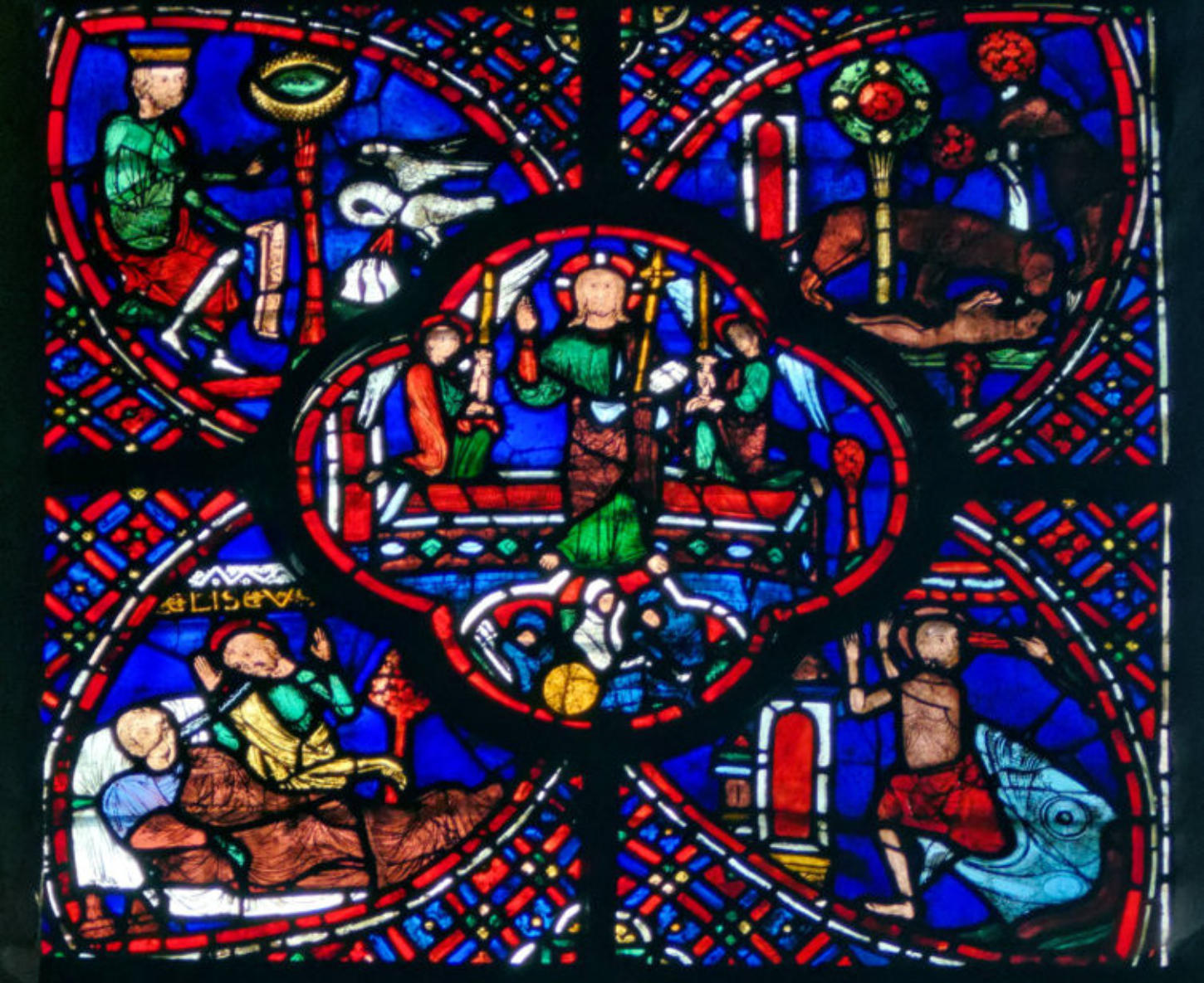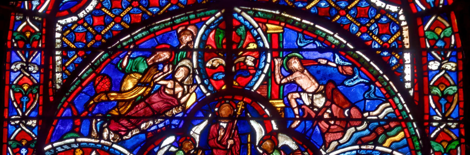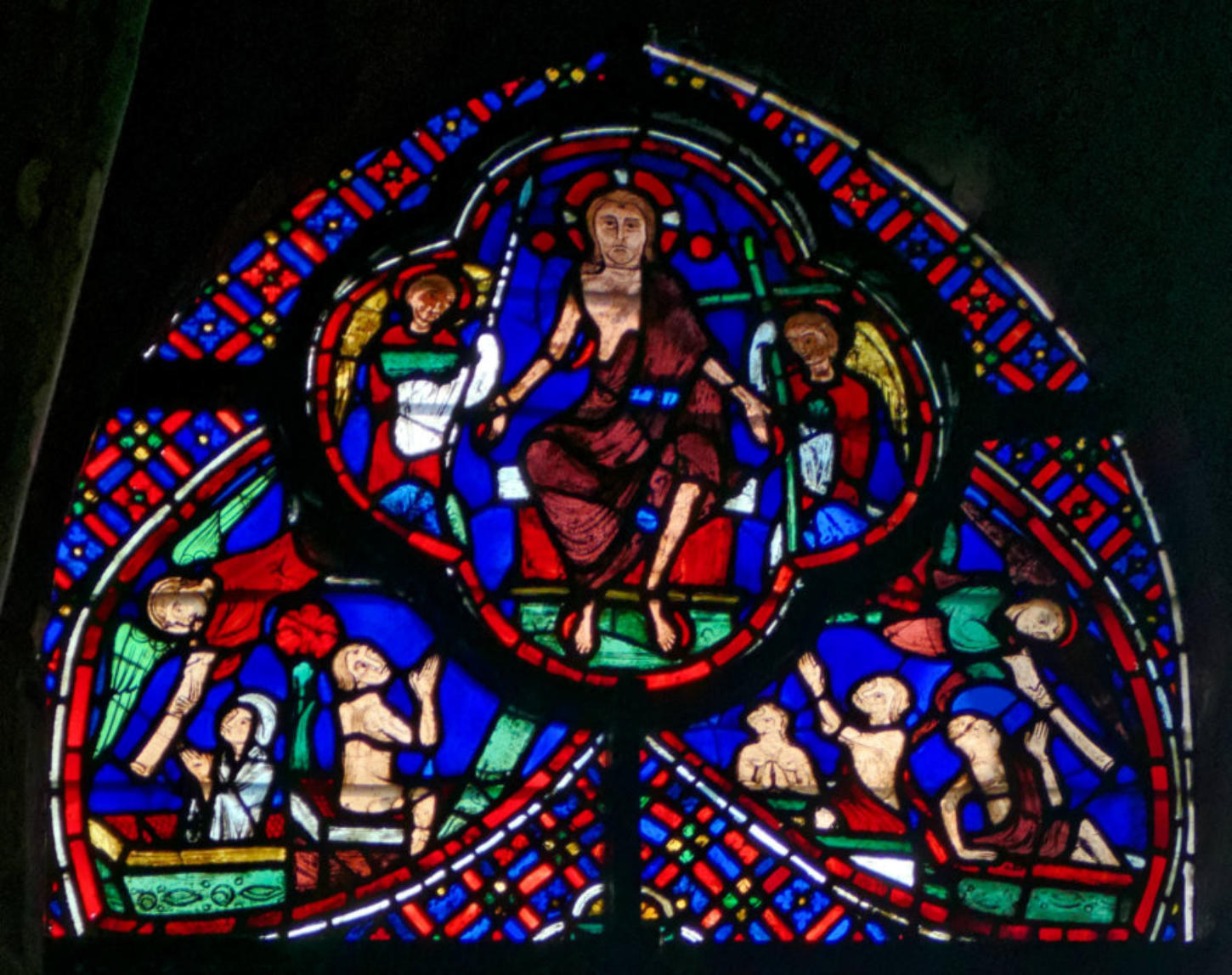1210-1215Bourges Cathédrale Saint-ÉtienneBaie 4Le Jugement dernierAbraham reçoit en son sein les élus alors que les damnés sont engloutis par le Léviathan