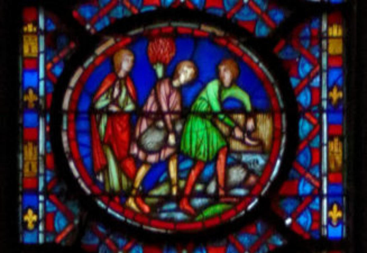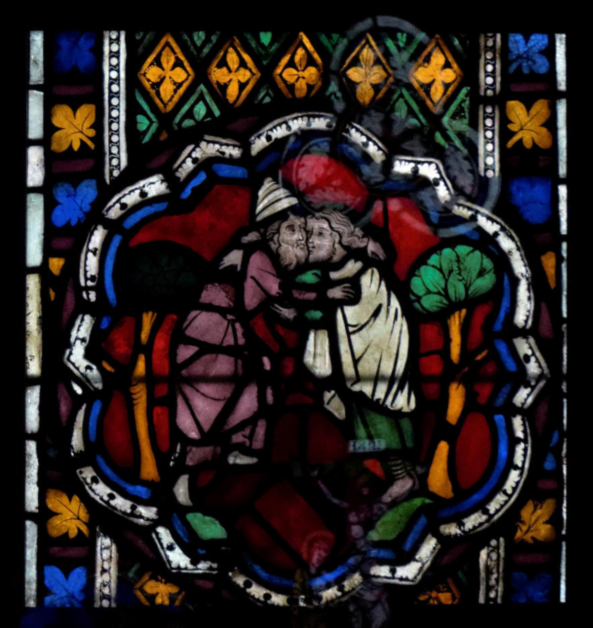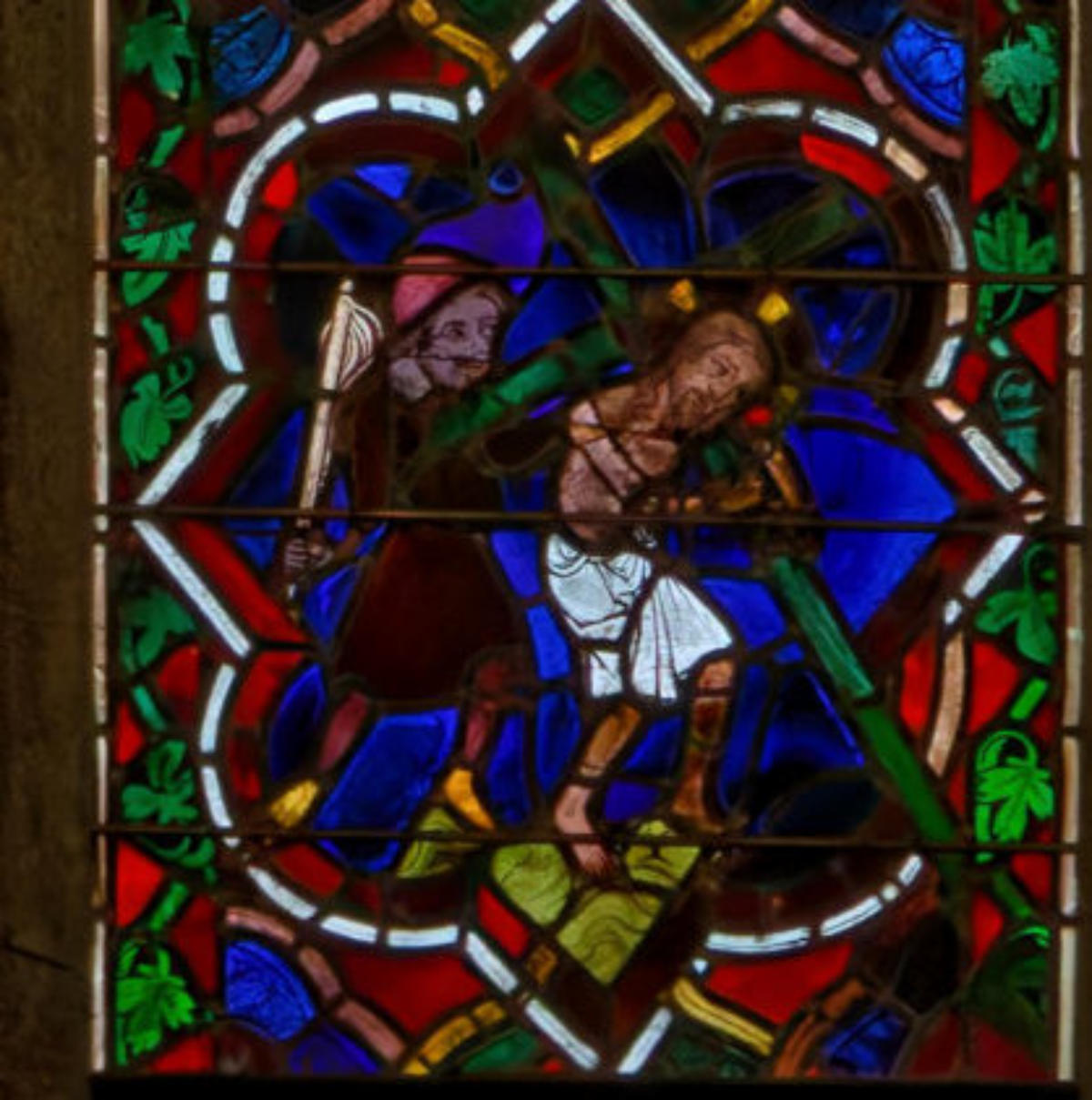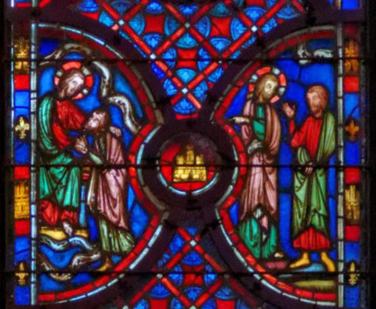 1250 Tours Cathédrale Saint-GatienBaie 0 Vitrail typologique de la Nouvelle-AllianceUn médaillon où Isaac porte le bois (croix) de son sacrifice