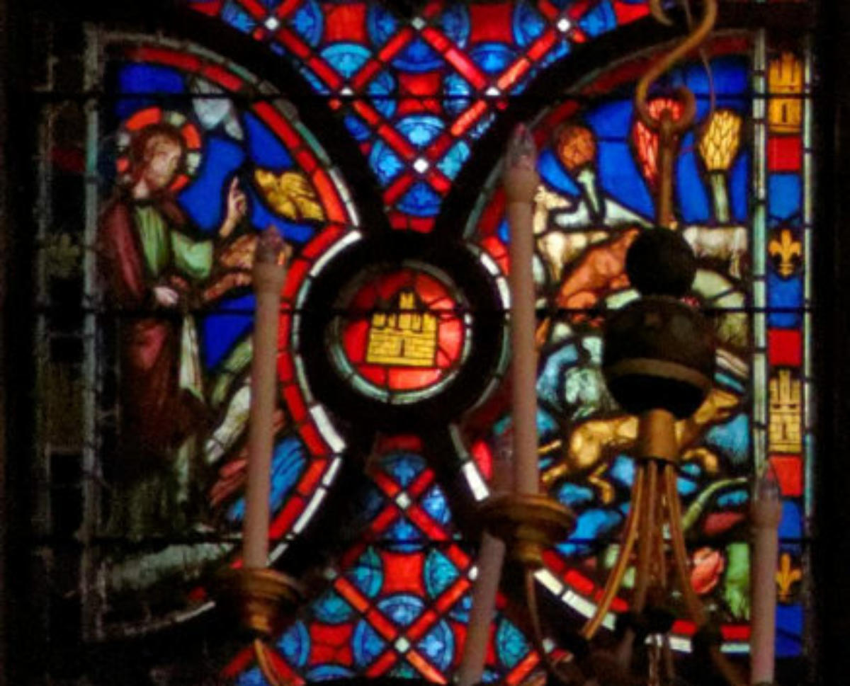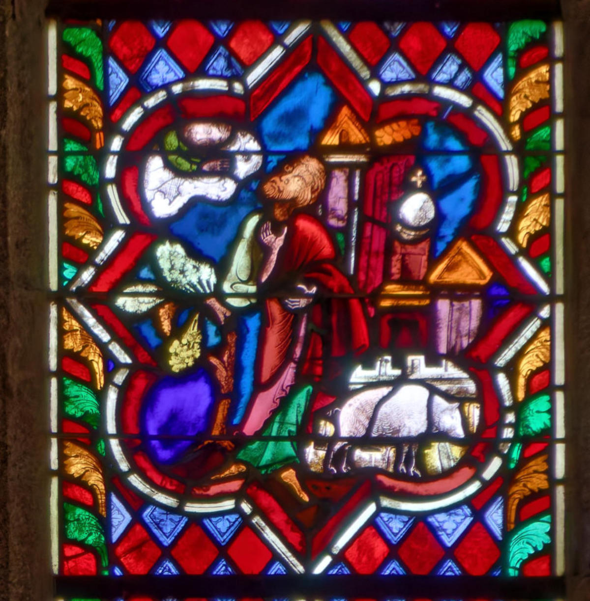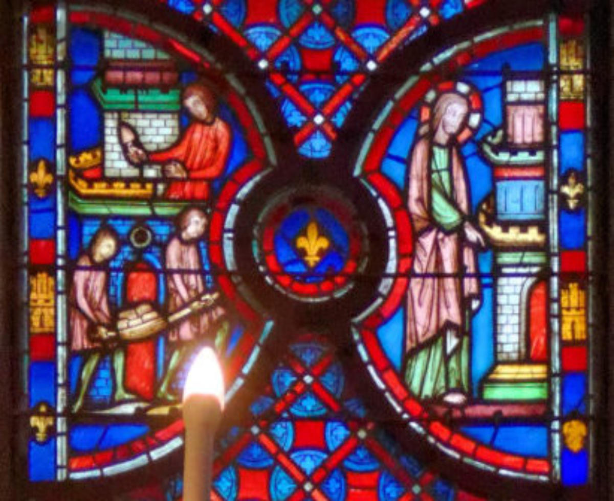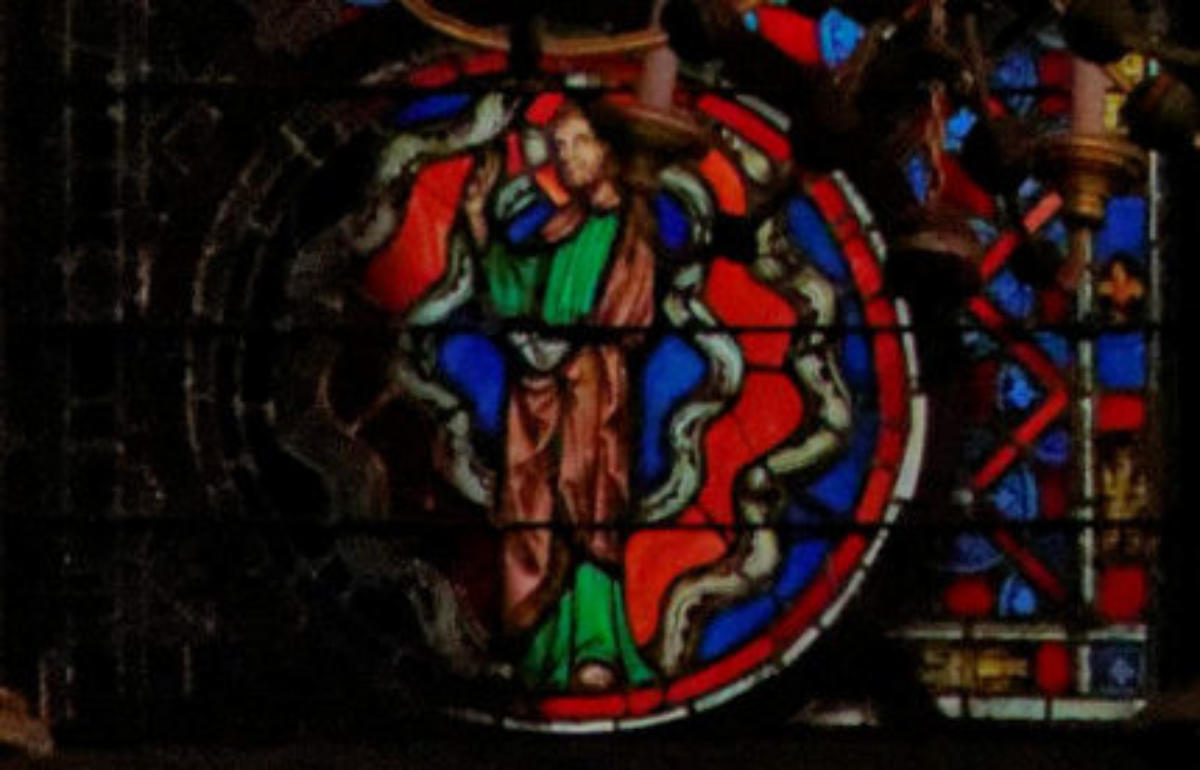 1250 Tours Cathédrale Saint-GatienBaie 0 Vitrail typologique de la Nouvelle-AllianceUn médaillon où Isaac porte le bois (croix) de son sacrifice