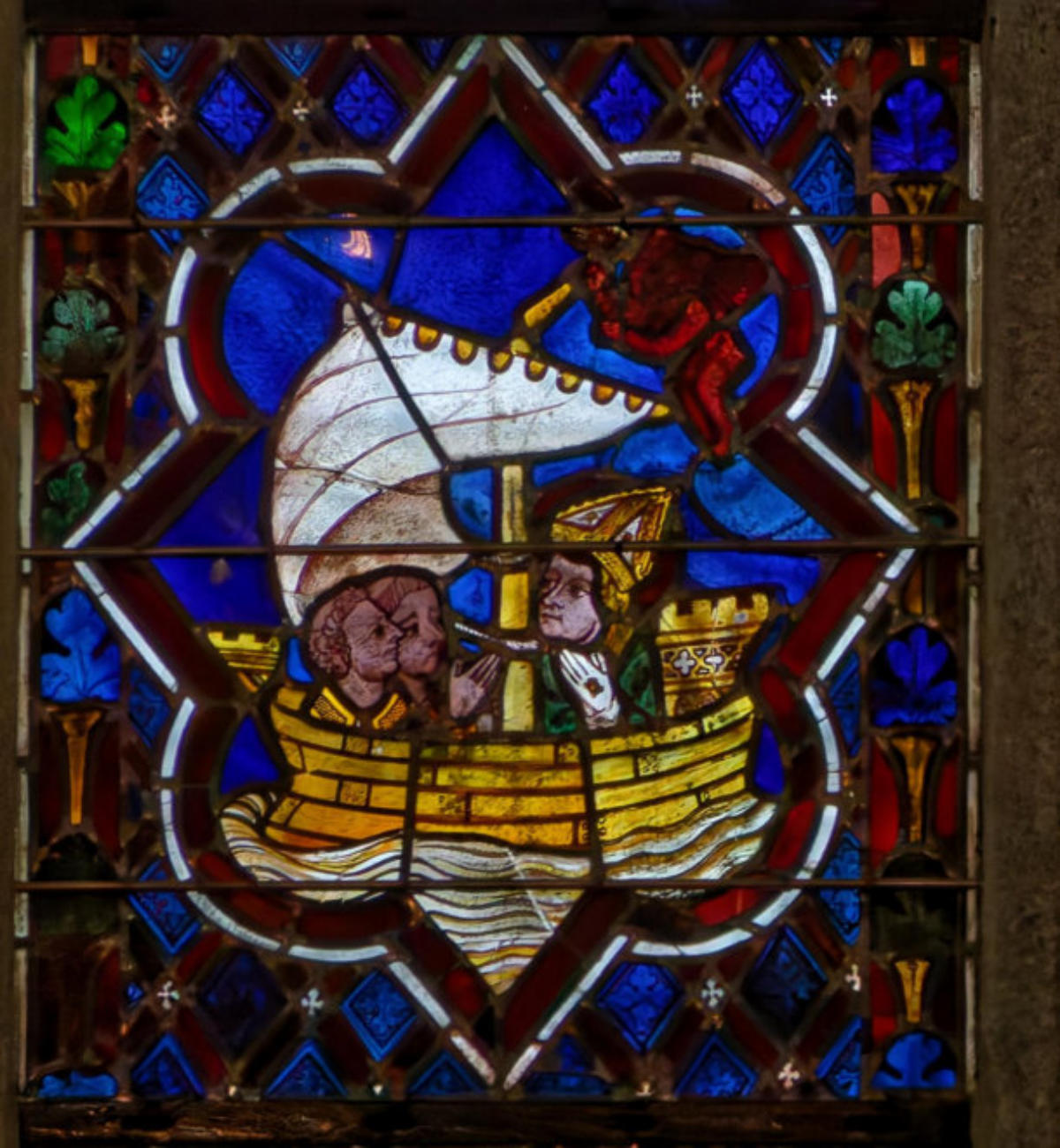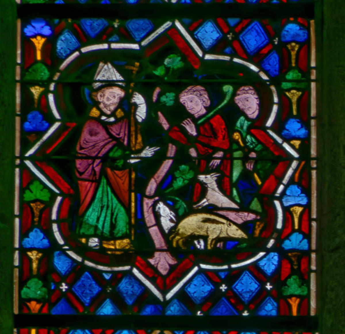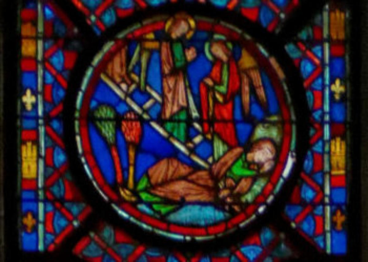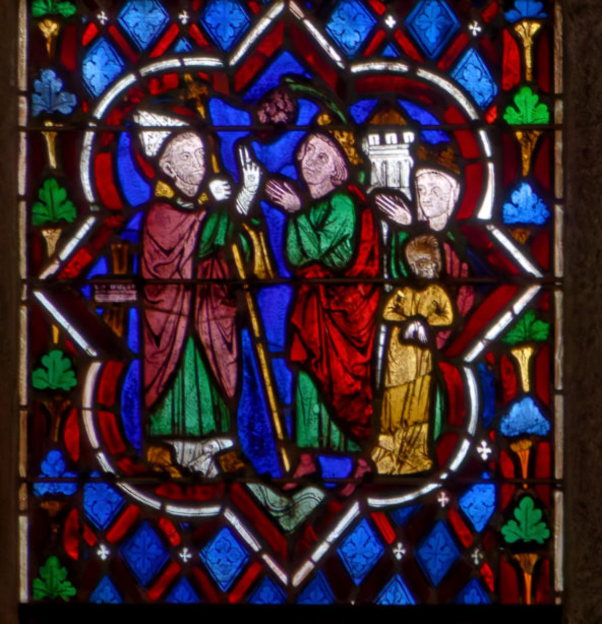 1250 Tours Cathédrale Saint-GatienBaie 0 Vitrail typologique de la Nouvelle-AllianceUn médaillon où Isaac porte le bois (croix) de son sacrifice