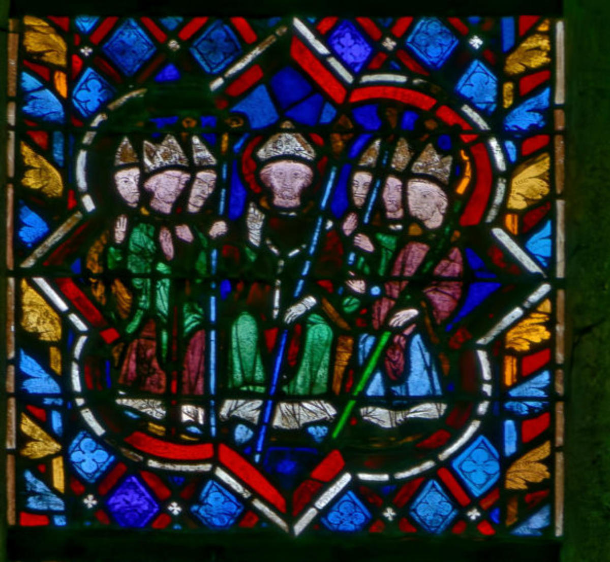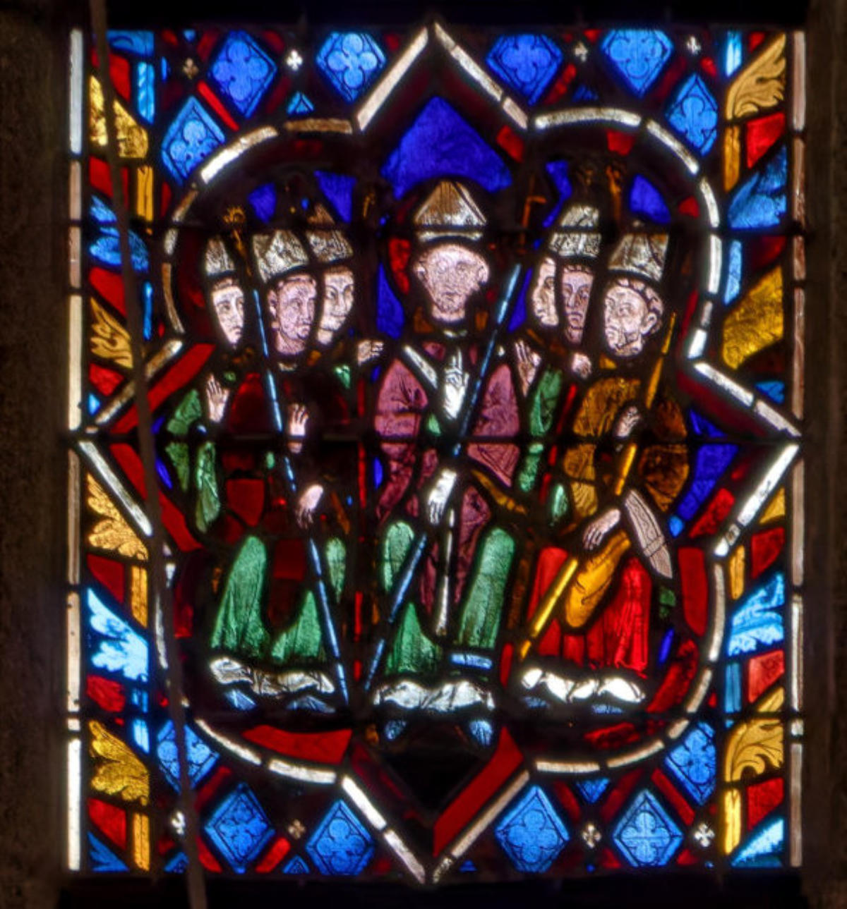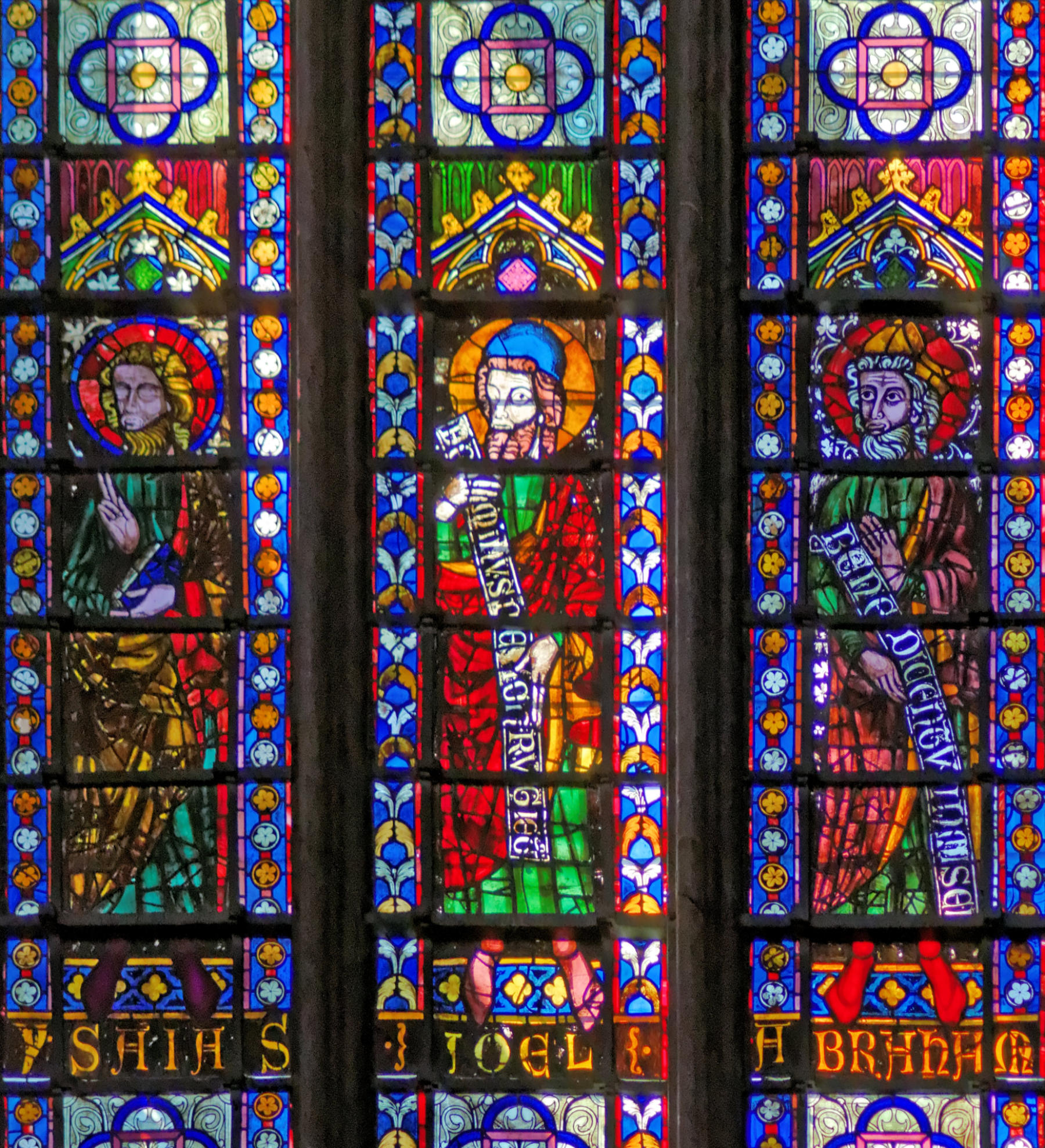 1270restauré par Didron en 1879Troyes Basilique Saint-UrbainBaie 111Abraham en pied avec Sam (Sem), Melchisédech et Isaac