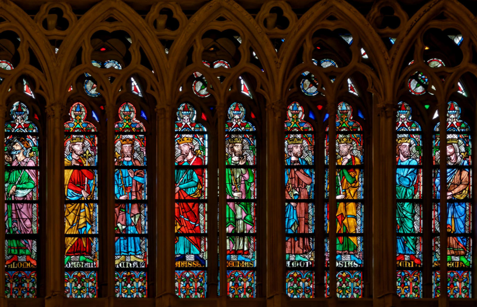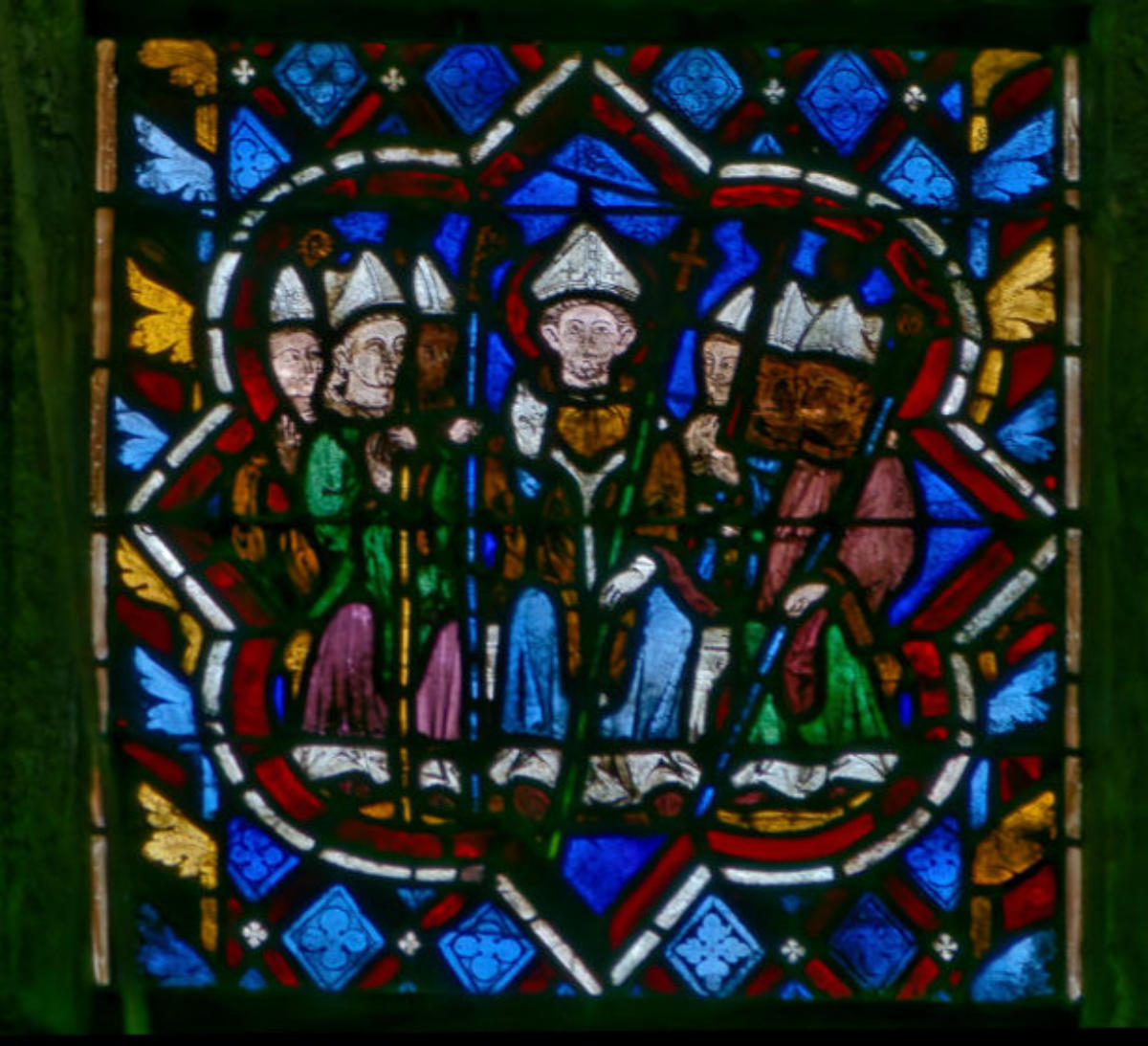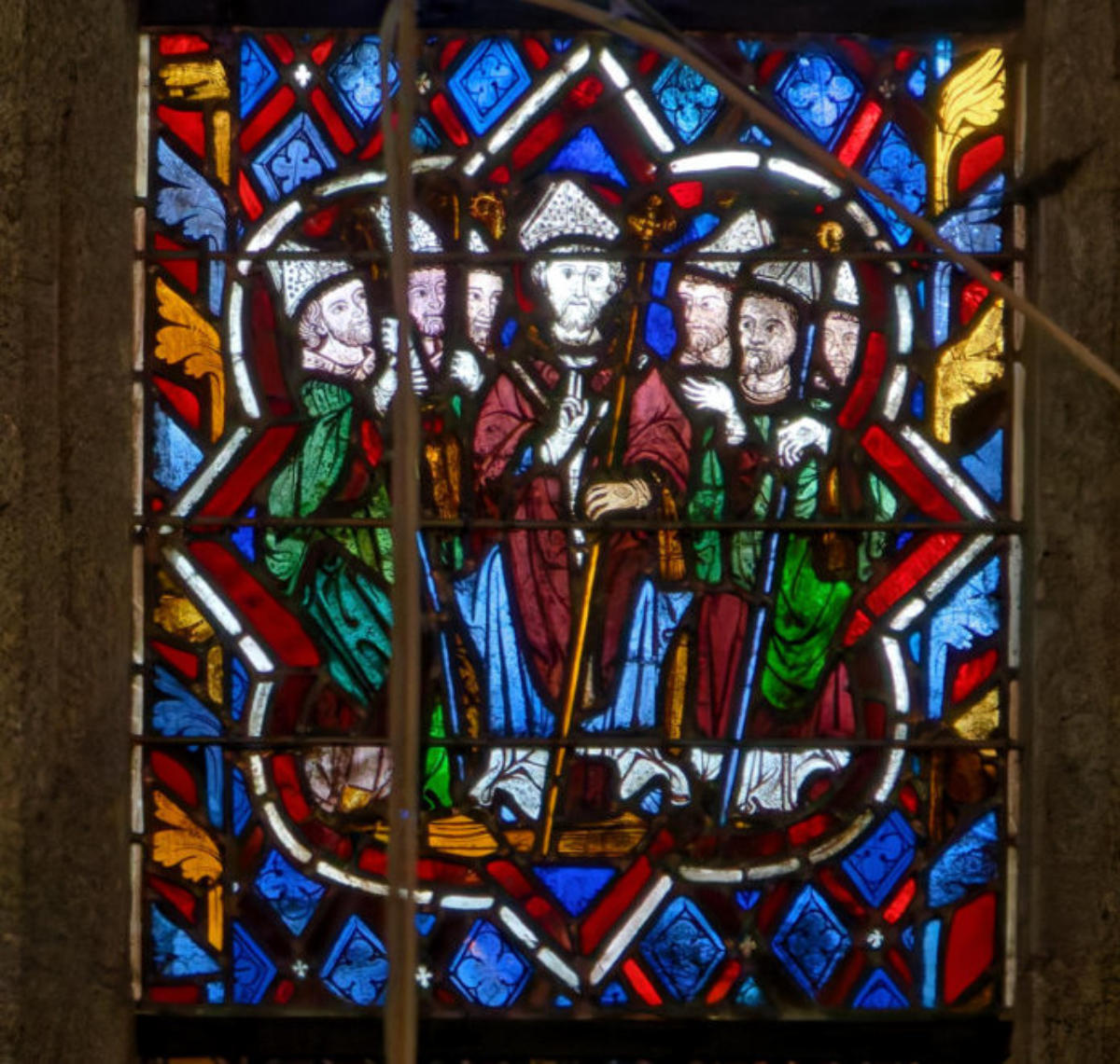 1270restauré par Didron en 1879Troyes Basilique Saint-UrbainBaie 111Abraham en pied avec Sam (Sem), Melchisédech et Isaac