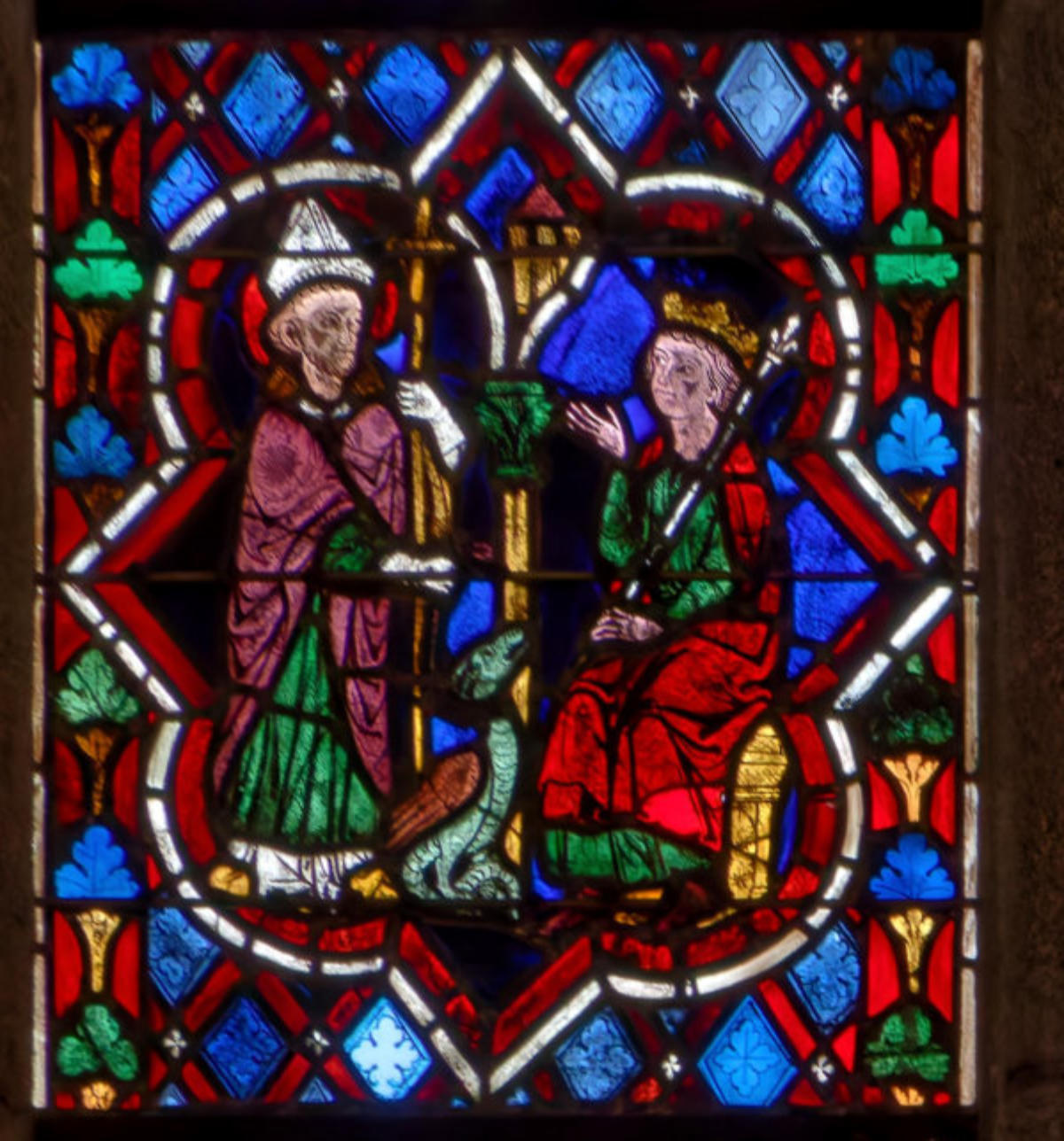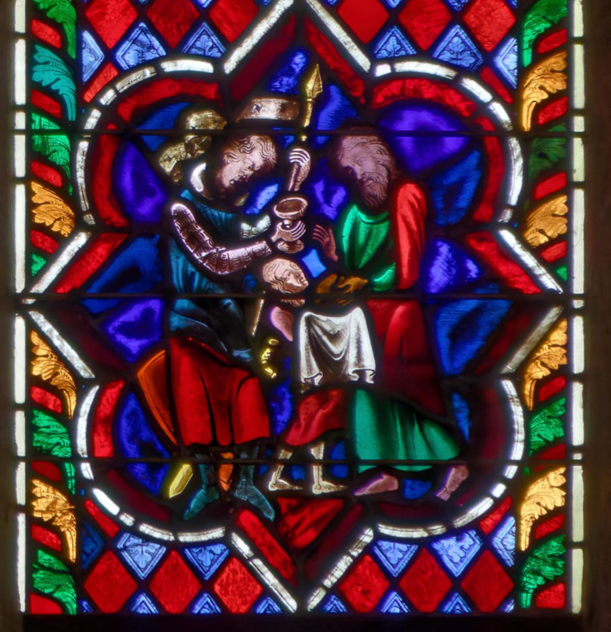 1270StrasbourgMusée de l’Oeuvre-Notre-Dame(Vitraux provenant de l’église des Dominicains?)Abraham et MelchisédechL’annonce de la naissance d’Isaac à Abraham par un ange (?)