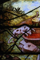 L’ange empêche Abraham de sacrifier Isaac avec un bouc sur la scène